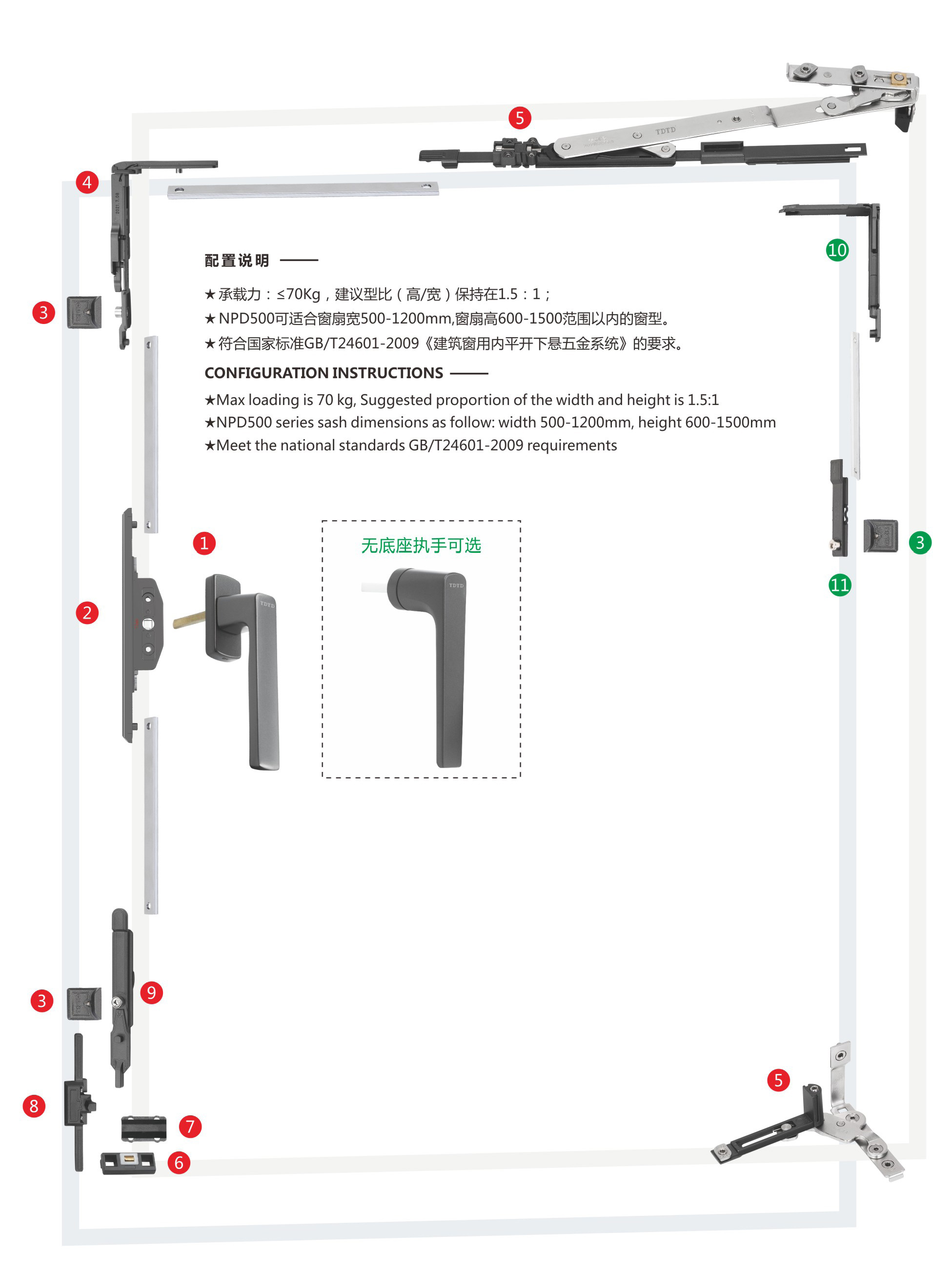 首页 >> 产品展示 >> 铝合金门窗五金系列 >> 平开窗五金系列 >> 内开内倒窗系列